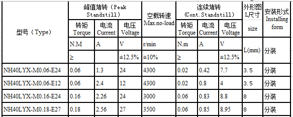 NH40LYX series brushless torque motor performance indicators