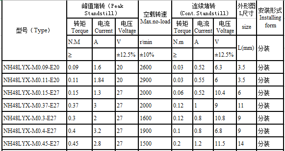 NH48LYX series brushless torque motor performance indicators