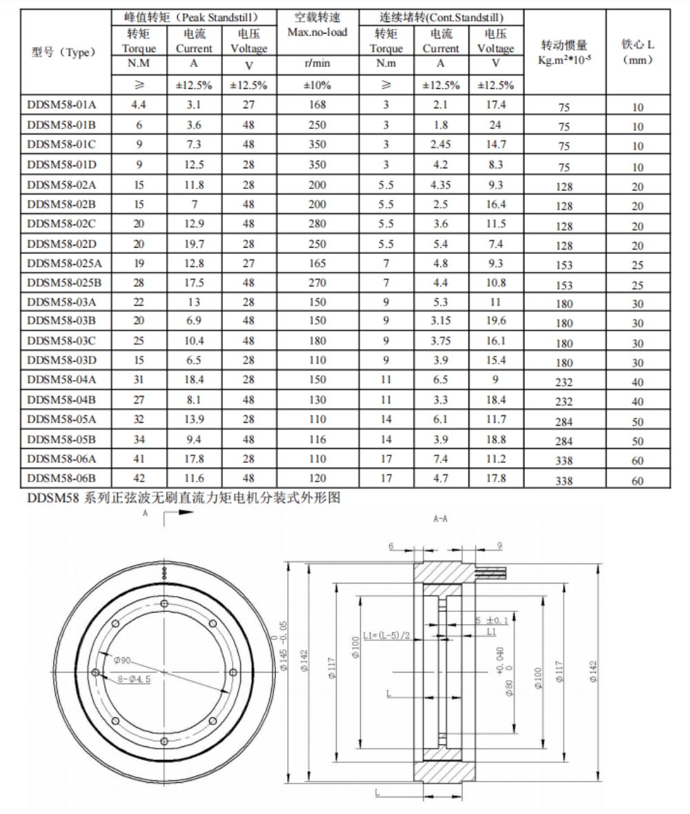 | DDSM58系列無(wú)刷直流力矩電機(jī) |
